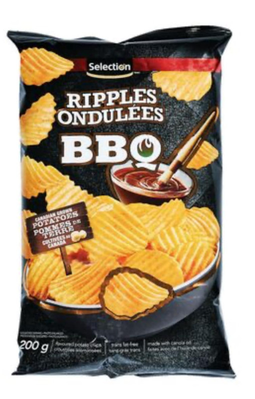 Selection ripples bbq chips 200g